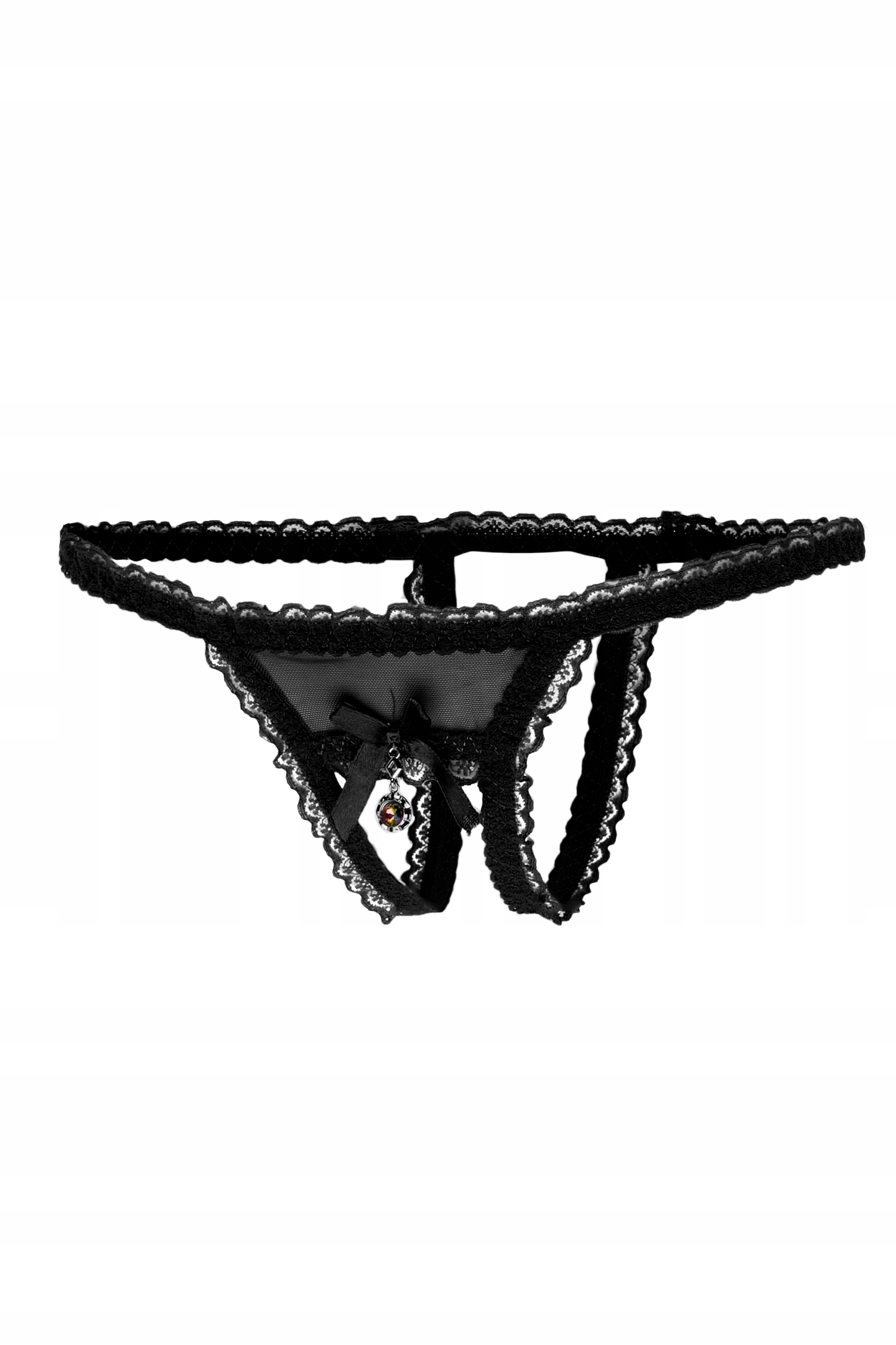 труси з відкритим кроком виготовлені з м'якого ретикулярного матеріалу та прикрашені спереду луком і каменем, укладеним. Нижня білизна приємна для тіла, добре розтягується і ідеально вписується на фігуру. Спокусливі трусики додають сексуальності та спеції стилізації.