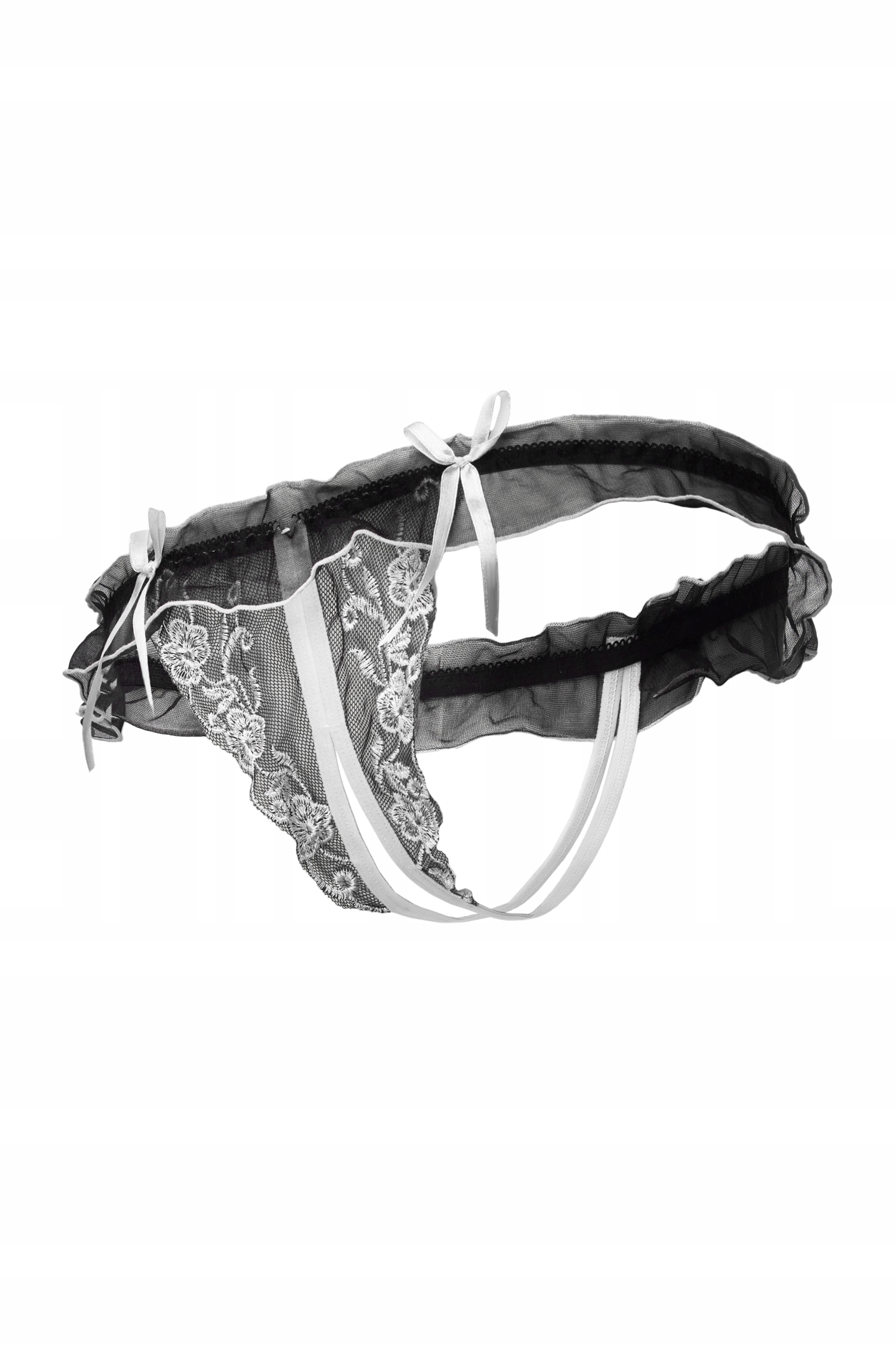 Еротичні труси, відкриті в промежині, виготовлені з м'якого сітчастого матеріалу. Передня частина прикрашена вишивкою та двома атласними луками. Нижня білизна приємна для тіла, добре розтягується і ідеально вписується на фігуру. М'яка гумка забезпечує зручну форму. Спокусливі трусики додають сексуальність та спецію стилю.