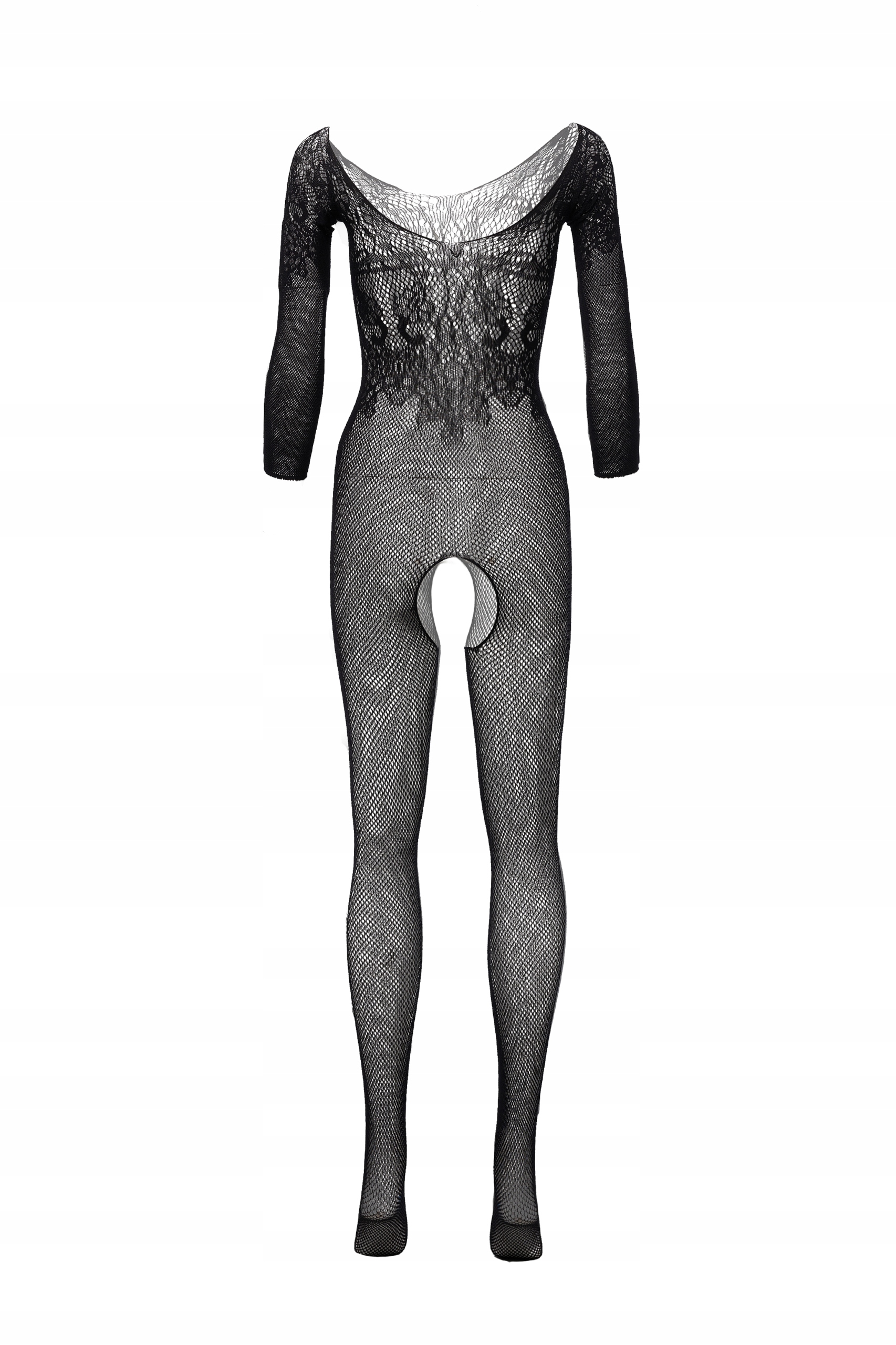 Еротичний комбінезон з вирізом в інтимній зоні виготовлений з м'якої приємної на дотик сітчастої тканини з декором. з візерунком. Боді добре тягнеться і підходить жінкам будь-якої статури.