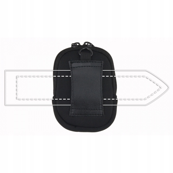 Невеликий, дуже зручний випадок для компактної камери. М’які стіни чудово адаптуються до форми камери та захищають від ударів, поглинають удари та захищають камеру від вологи. Невелика кишеня для аксесуарів була розміщена всередині. На задній частині він має ручку, яка дозволяє прикріпити до пояса штанів. Ремінець плеча, що входить до металевих гвинтівок.