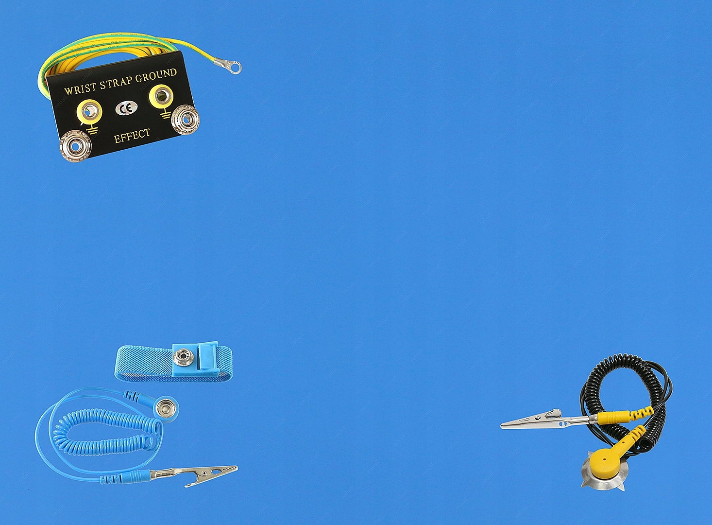 - ЕСД-лента – забезпечує захист електронних пристроїв і компонентів від електростатичних розрядів, які можуть виникнути як результат їх контакту з користувачем. Електростатичний заряд може накопичуватися на поверхні тіла або одягу користувача, напр. через контакт зі штучним одягом або штучними матеріалами, в тому числі при ходьбі по килиму. Тоді може виникнути електростатичний розряд високої напруги (до кількох тисяч вольт). Користувач цього не відчуває, тому що сила струму в такому випадку незначна. Однак для електроніки, особливо мікропроцесорів та інтегральних схем, це може бути смертельним зарядом. Тому під час контакту з будь-якими чутливими електронними компонентами або спаювання будь-яких чутливих електронних компонентів слід одягати браслет. Ремінь має металеву поверхню зсередини, яка контактує з рукою користувача. Усі заряди розряджаються на землю за допомогою кабелю зі штекером типу «банан» із затискачем типу «крокодил».