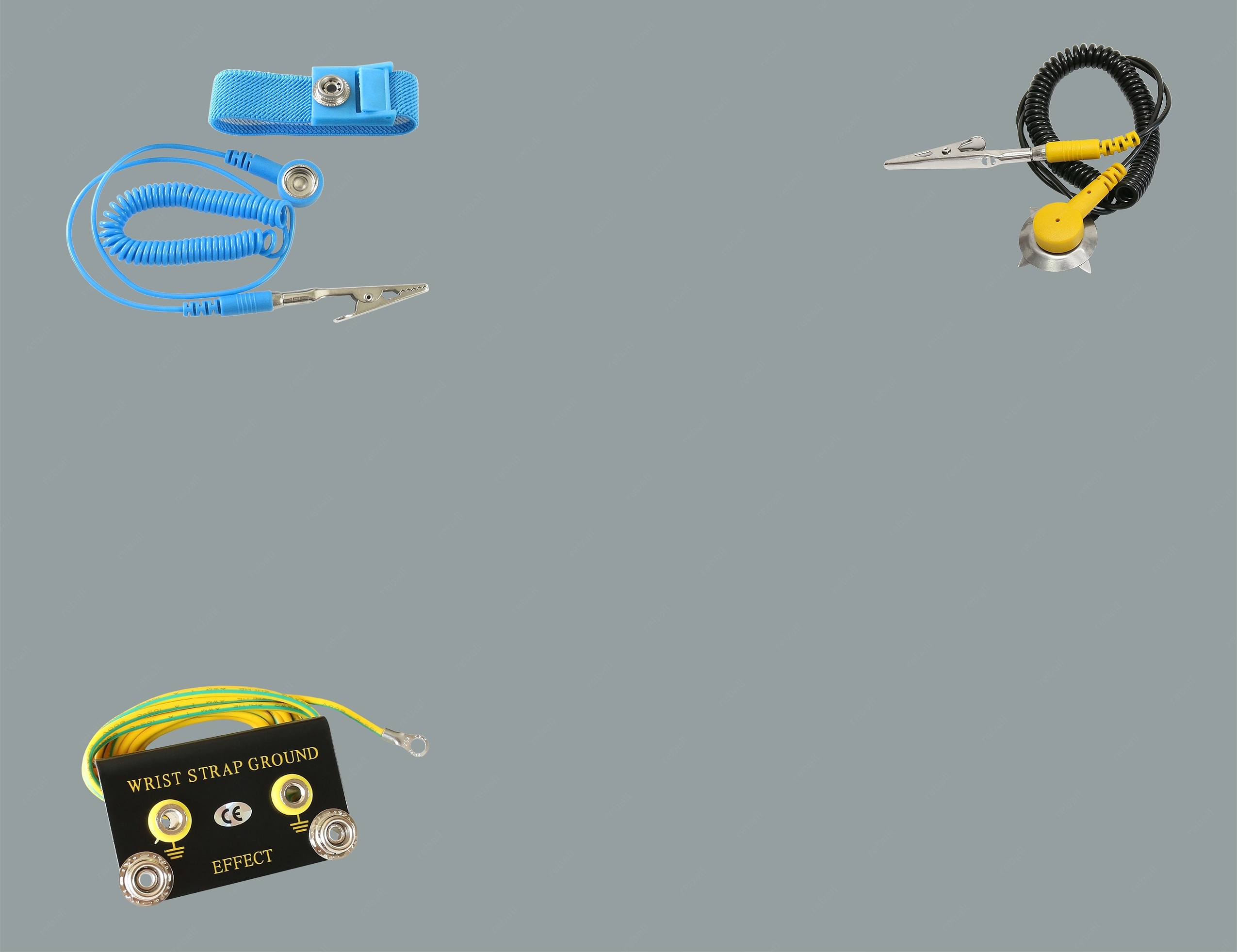 - Браслет ESD – забезпечує захист електронних пристроїв і компонентів від електростатичних розрядів, які можуть виникнути внаслідок їх контакту з користувача. Електростатичний заряд може накопичуватися на поверхні тіла або одягу користувача, напр. через контакт зі штучним одягом або штучними матеріалами, в тому числі при ходьбі по килиму. Тоді може виникнути електростатичний розряд високої напруги (до кількох тисяч вольт). Користувач цього не відчуває, тому що сила струму в такому випадку незначна. Однак для електроніки, особливо мікропроцесорів та інтегральних схем, це може бути смертельним зарядом. Тому під час контакту з будь-якими чутливими електронними компонентами або спаювання будь-яких чутливих електронних компонентів слід одягати браслет. Ремінь має металеву поверхню зсередини, яка контактує з рукою користувача. Усі заряди розряджаються на землю за допомогою кабелю зі штекером типу «банан» із затиском «крокодил».