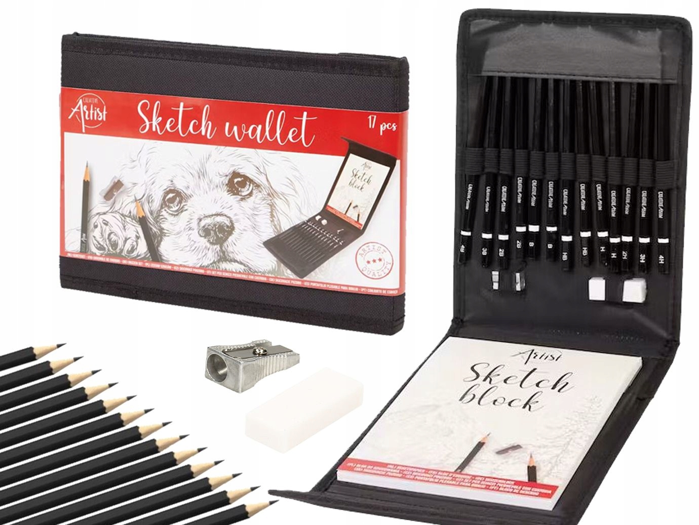 - 13 олівців для ескізів (4h, 3h, 2h, h, h, hb, hb, b, b, 2b, 2b, 3b, 4b)