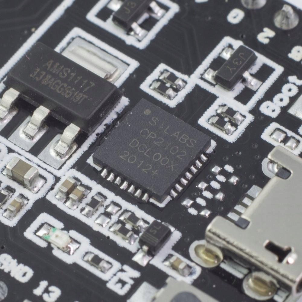 Програмування стало легшим завдяки конвертеру USB-UART на мікросхемі CP2102, розташованому на платі. Додаткова кнопка BOOT переводить систему ESP32 в режим програмування.