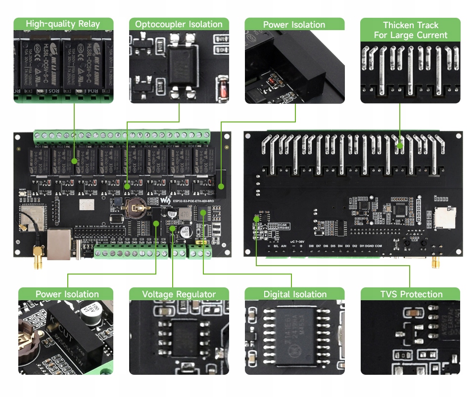 - Інтеграції з інтеграцією для домашніх систем або іншими системами INT IN Wi -Fi або Ethernet Networks, де потрібні гальванічна ізоляція та висока надійність. Waveshare