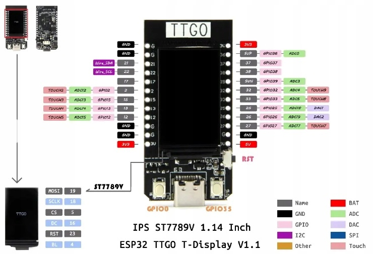 - Дисплей: 1,14-дюймовий IPS LCD ST7789V