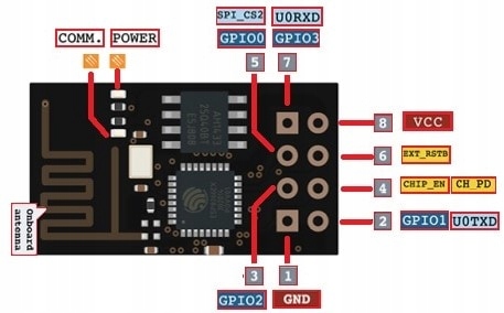 - Інтерфейс UART для зв'язку з зовнішній мікроконтролер або програмування ESP8266 на модулі.