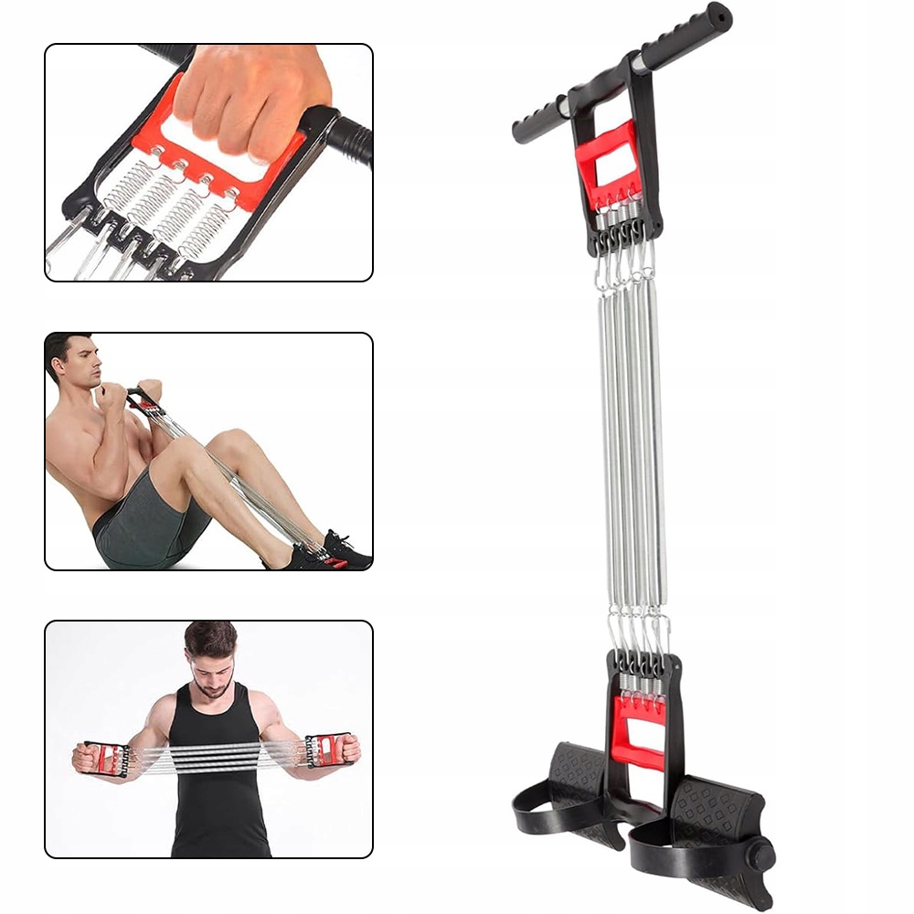 Пружинний еспандер задіює практично всі групи м'язів, допомагаючи спортсменам досягти відмінної фізичної форми. Подвійні пластикові ручки дозволяють використовувати еспандер як тренажер для рук, плечей і грудей. Додаткові ручки і педалі дозволяють тренувати спину, живіт і ноги.