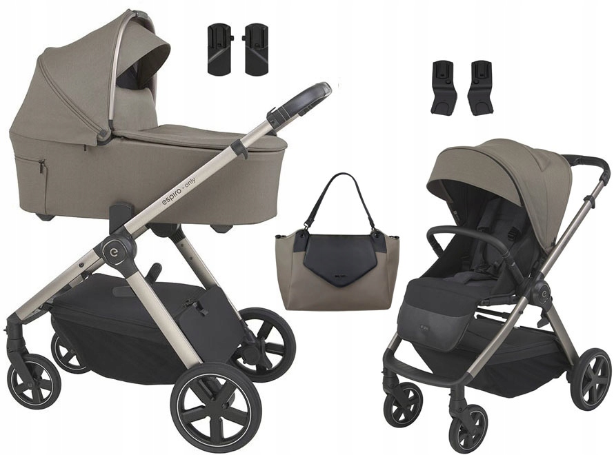 Еспіро, що стосується лише коляска, є повною функціональністю та багатством аксесуарів у світлі та компактних формах. Розроблений для всієї дитячої коляски, так що вона обслуговує батьків протягом перших 4 років життя дитини, без необхідності купувати окрему коляску.