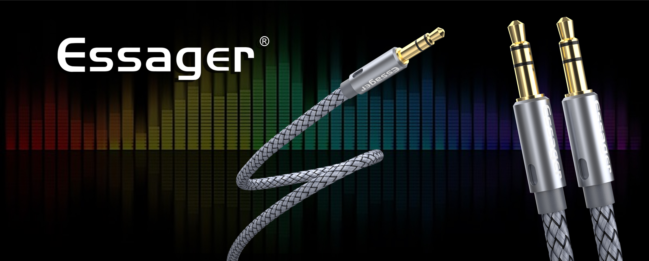 ОРИГІНАЛЬНИЙ КАБЕЛЬ ESSAGER® 2X MINI JACK 3,5 ММ ІЗ ПОЗОЛОЧЕНИМИ КІНЦЯМИ - НАДЗВИЧАЙНО МІЦНИЙ.
