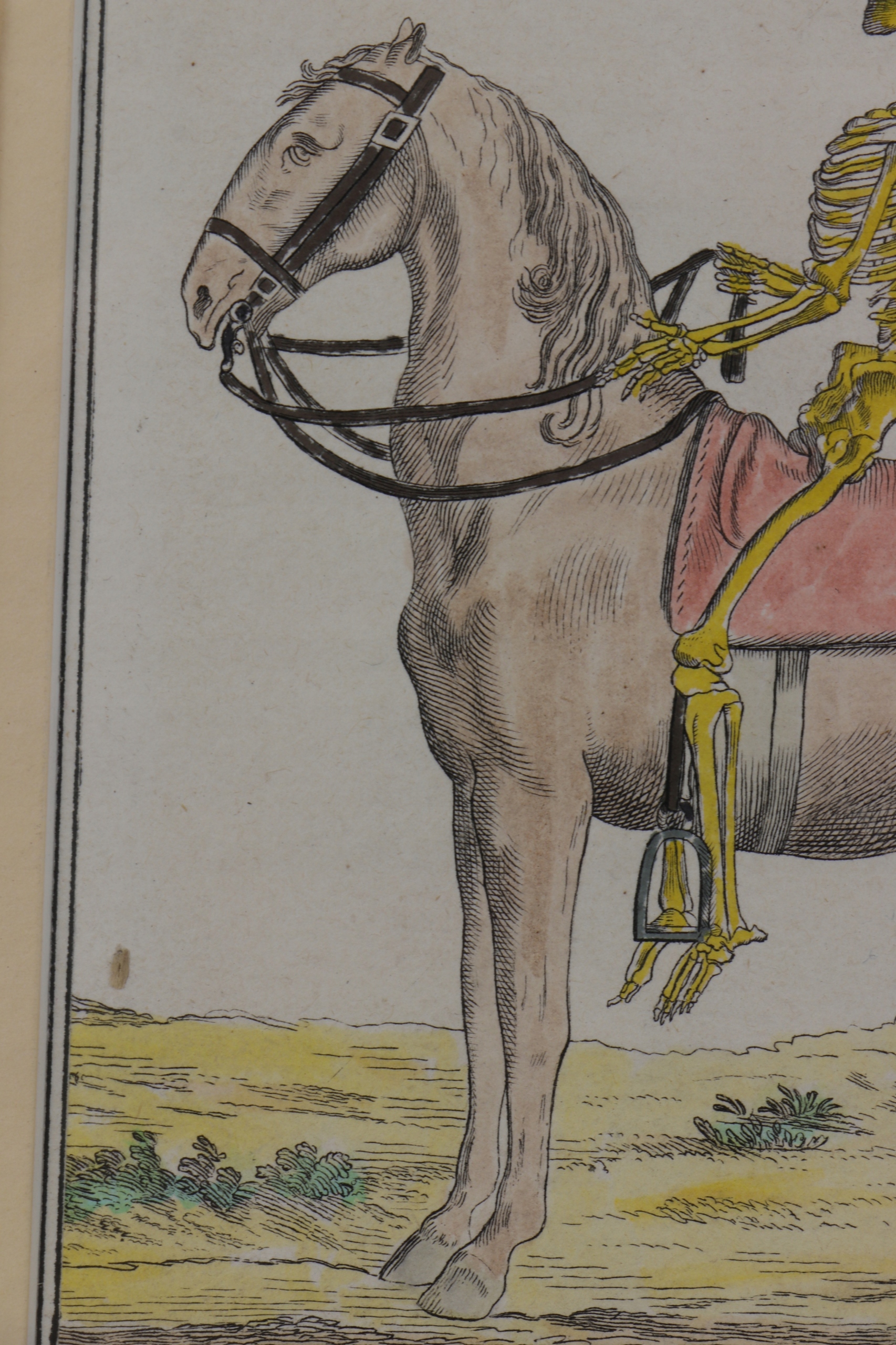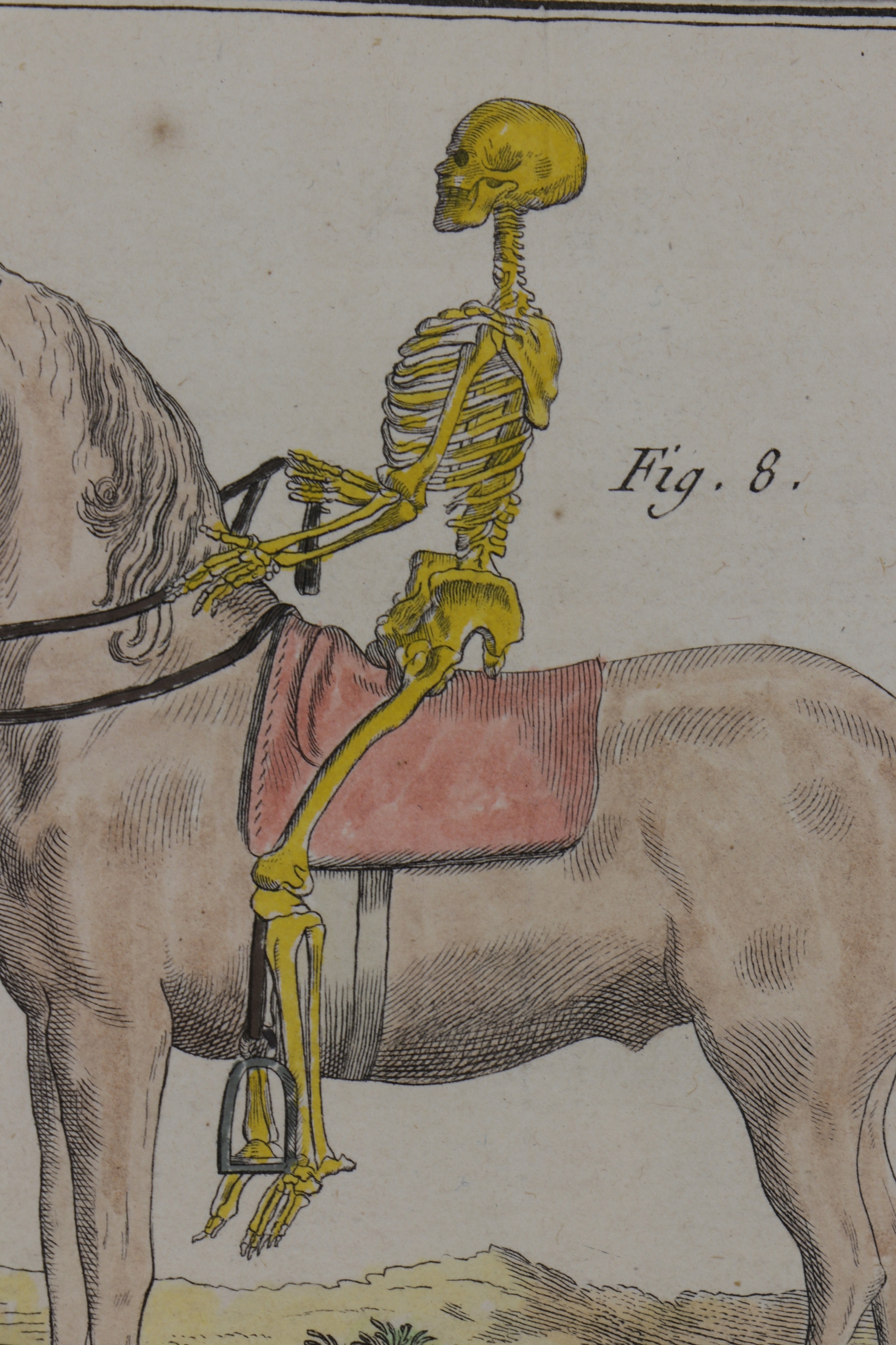 Естамп Harguinier 1763 1768 Кінь з візуалізацією людського скелета Античний