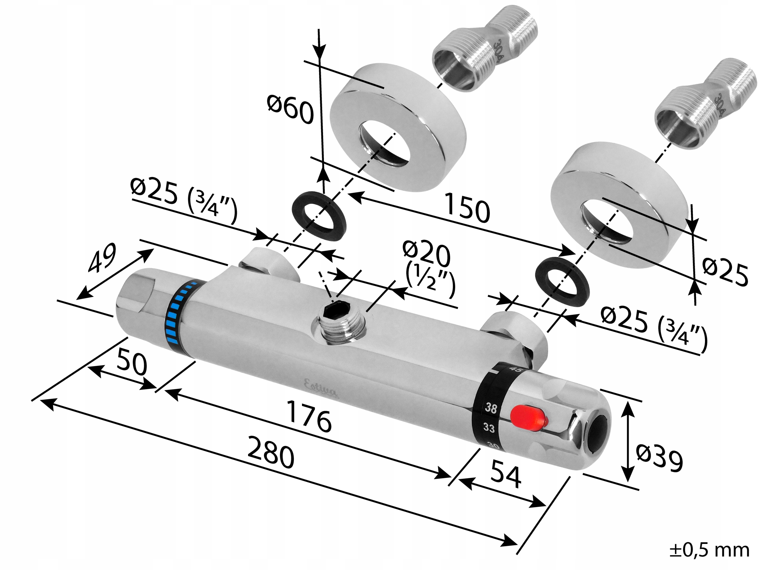 Встановіть термостатичну стінову акумуляторну акумулятор estiva ratos