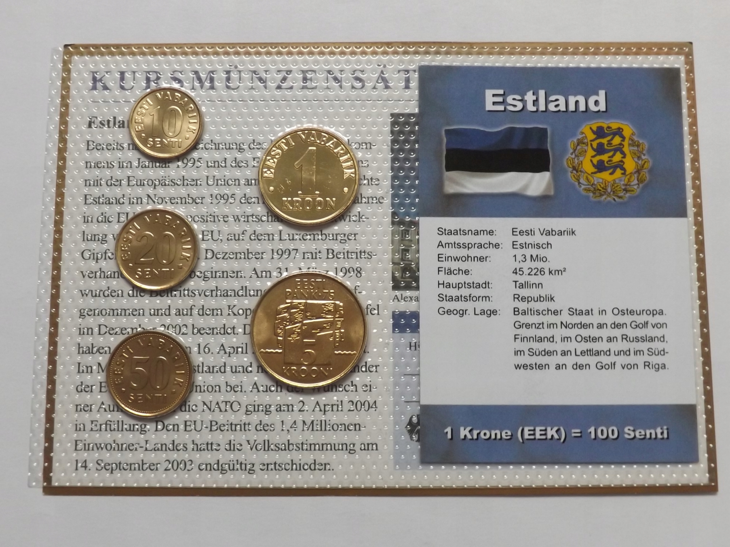 Естонія 1992-2002 Набір обігових монет, блістер 5 x UNC
