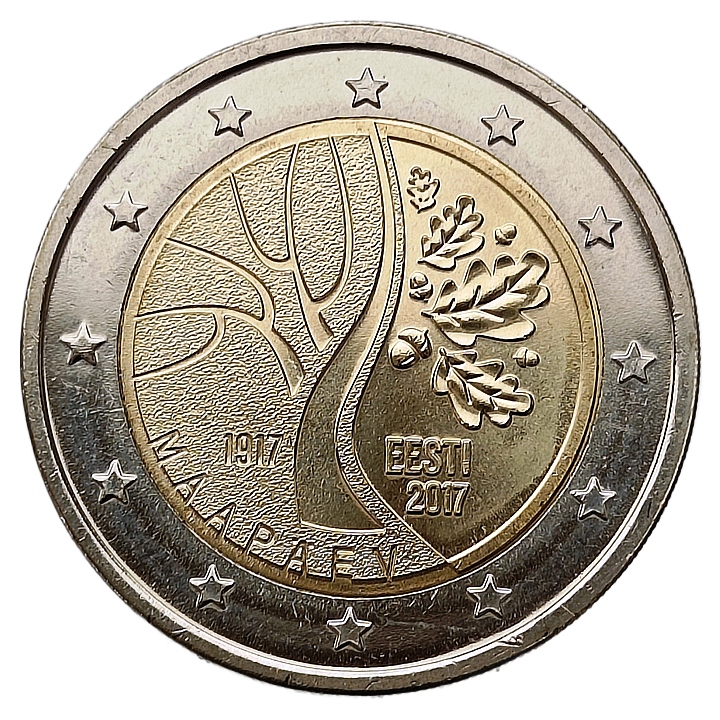 ЕСТОНІЯ 2 ЄВРО 2017 ДЕРЕВО - НЕЗАЛЕЖНІСТЬ БІМЕТАЛЕВИЙ МОНЕТ