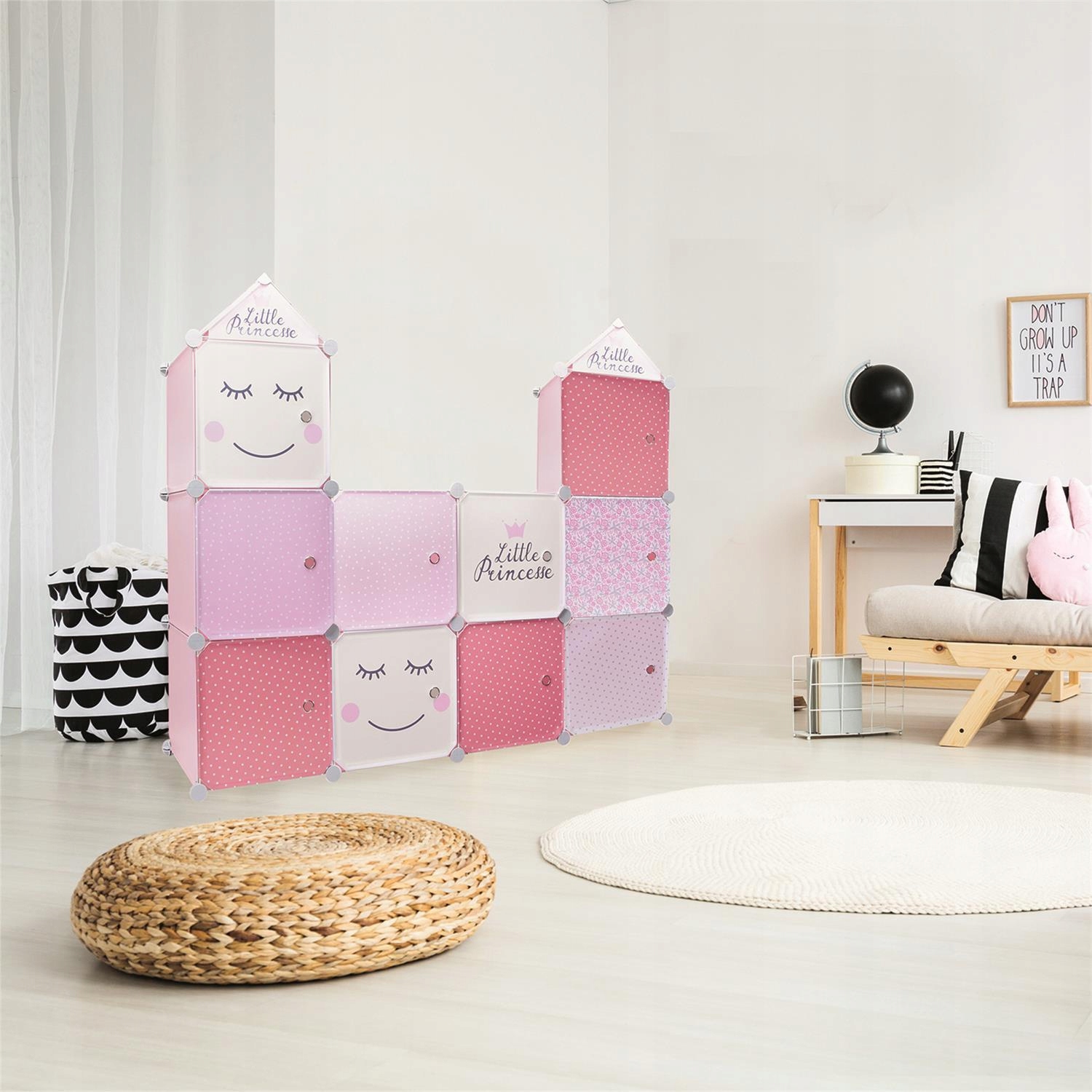Сучасна та стильна дитяча полиця ідеально підходить для зберігання книг та іграшок. Адаптуйте його до простору та виберіть одну з двох комбінацій кольорів.