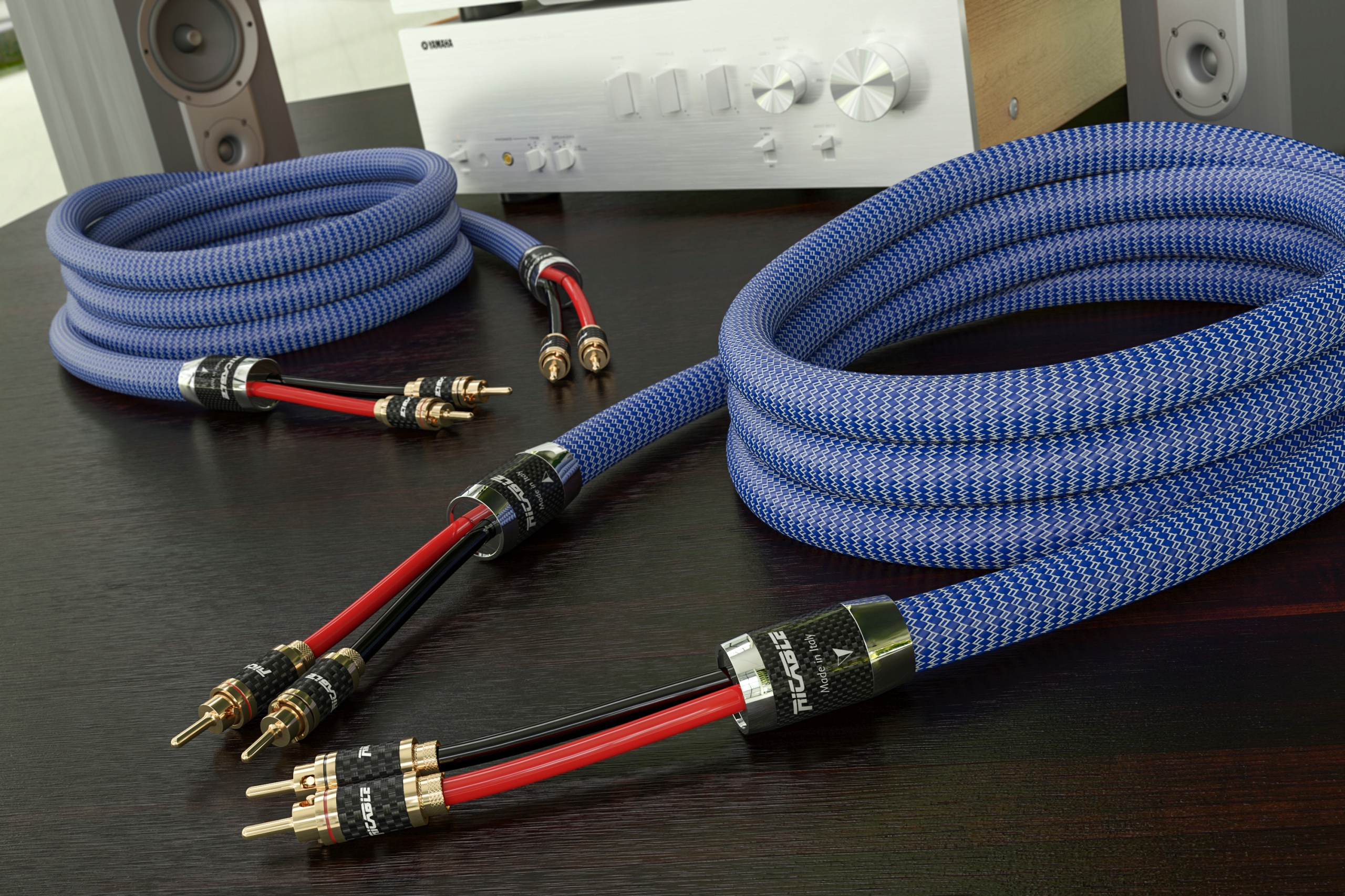 Пара кабелів для підключення підсилювача до динаміків абсолютного престижу.