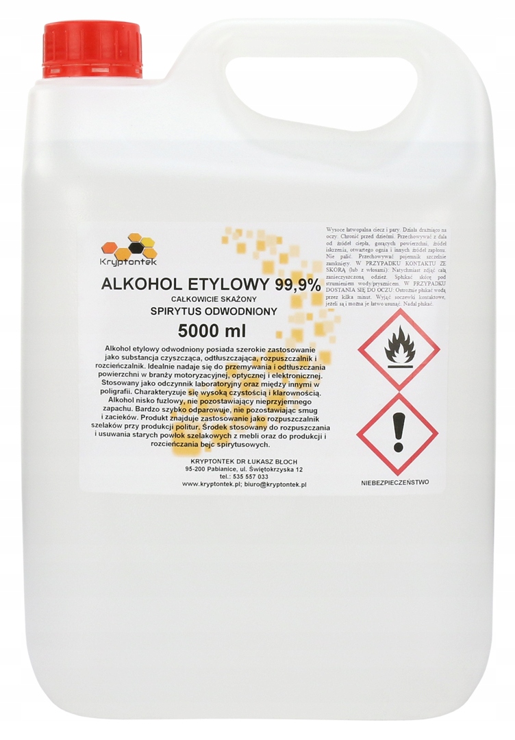 Оплачивая «ЭТАНОЛ 99,9% СПИРТ РЕКТИФИЦИРОВАННЫЙ ОБЕЗВОЖЕННЫЙ 5Л», вы можете быть уверены, что данное изделие из каталога «Препараты для дезинфекции» будет доставлено из Польши и проверено на целостность. В цене товара, указанной на сайте, учтена доставка из Польши. Внимание!!! Товары для Евросоюза, согласно законодательству стран Евросоюза, могут отличаться упаковкой или наполнением.