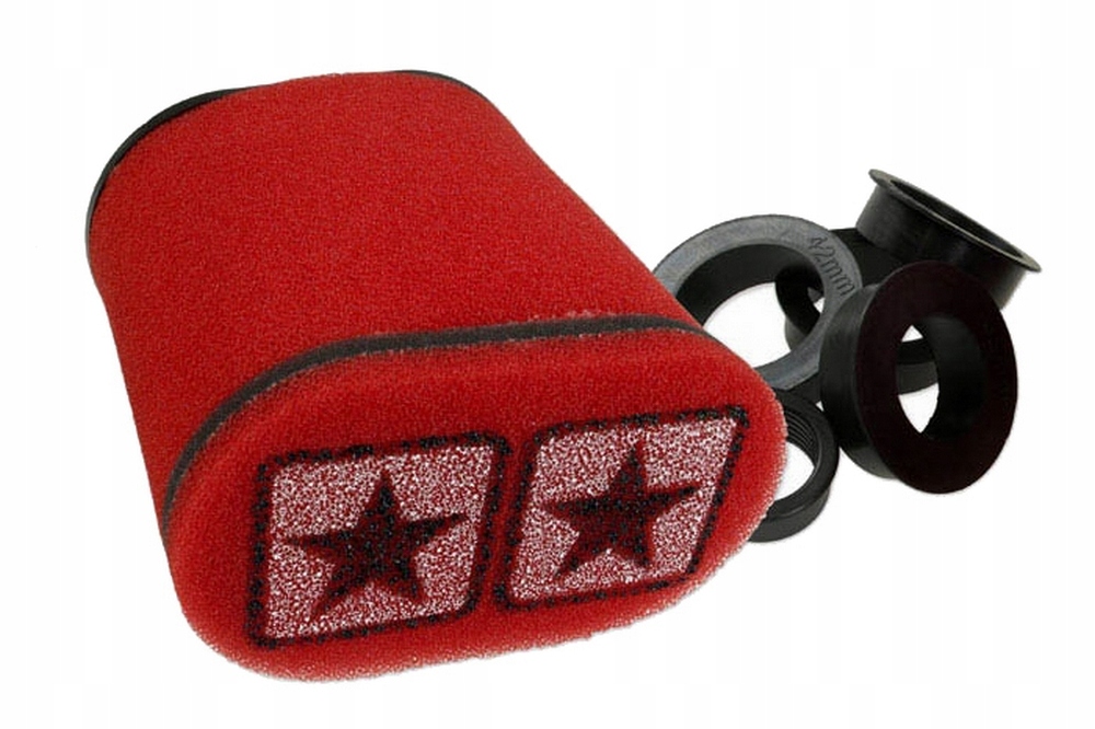 підходять до карбюраторів з діаметром з діаметром: 28, 35, 42, 45, 49 та 55 мм - завдяки прикріпленим адаптерам фільтр є універсальним і простим у встановленні. Після встановлення фільтра виберіть правильну основну насадку в карбюраторі, щоб підтримувати правильні параметри роботи двигуна.