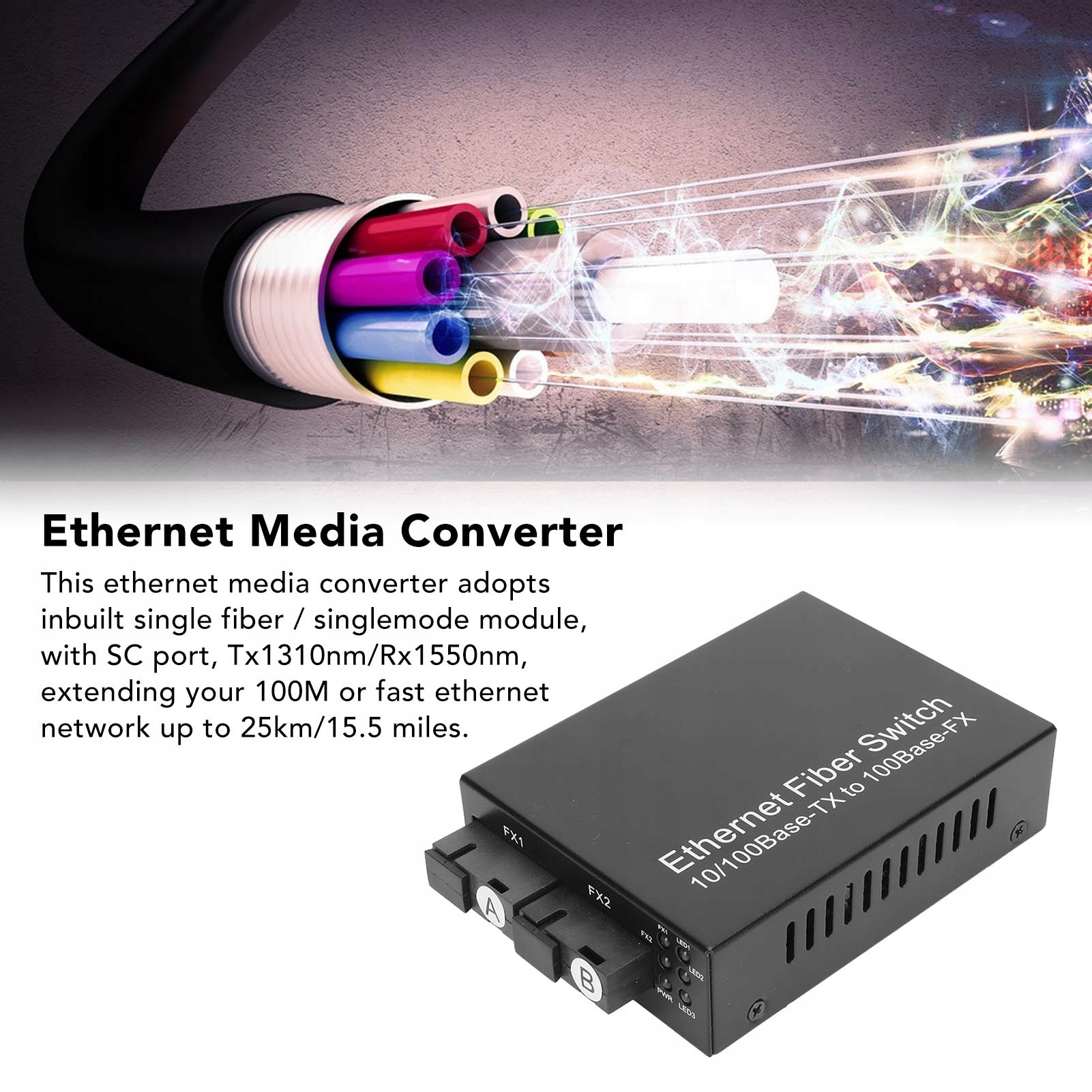 1. Одиночний режим моду з одиночним волокном: Цей перетворювач Ethernet має вбудований -in -мод/одиночний мод модуля з SC, TX1310NM/RX1550NM PORT, розширюючи свою 100 -метрову мережу Ethernet до 25 км/15,5 миль. >
