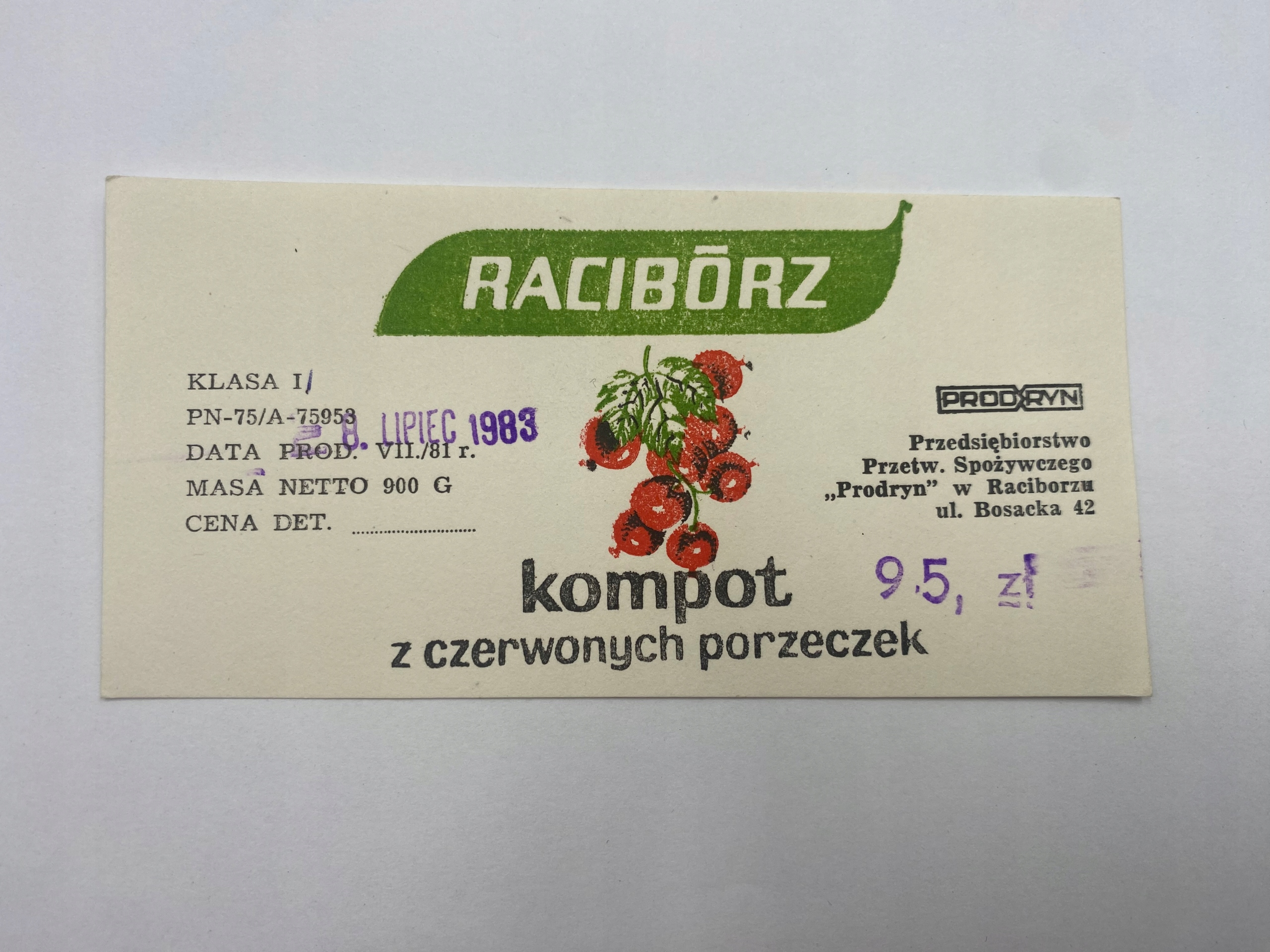 Етикетка Prodryn Racibórz компот з червоної смородини