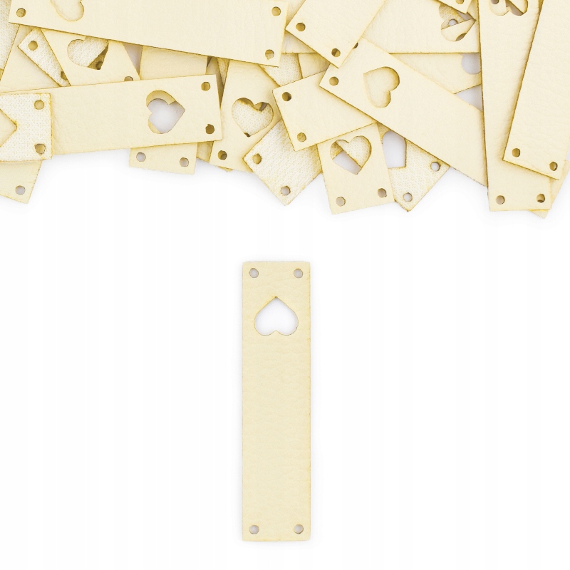 Бірка з екошкіри "Серце" / кремова / 60 х 15 мм / 1 шт.