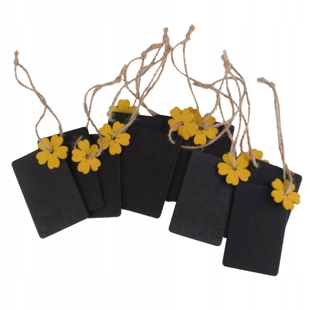 Двосторонні дерев'яні прямокутні бирки для дощок Кожна дошка постачається з простою мотузкою для кріплення, що робить її ідеальною для вінтажного стилю! Ці етикетки чудово підходять для прикраси інтер’єру, весільних подарунків, подарункових ярликів, квітів, пляшок, із цінами або просто для прикраси. Матеріал: дерево: чорний, жовтий Кожен чорний прямокутник має розміри приблизно 7,0 4,5 см. Пакет включає: