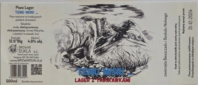 Etykieta Browar Dukla Temu Misiu... Lager Truskawkowy 31-12-2024