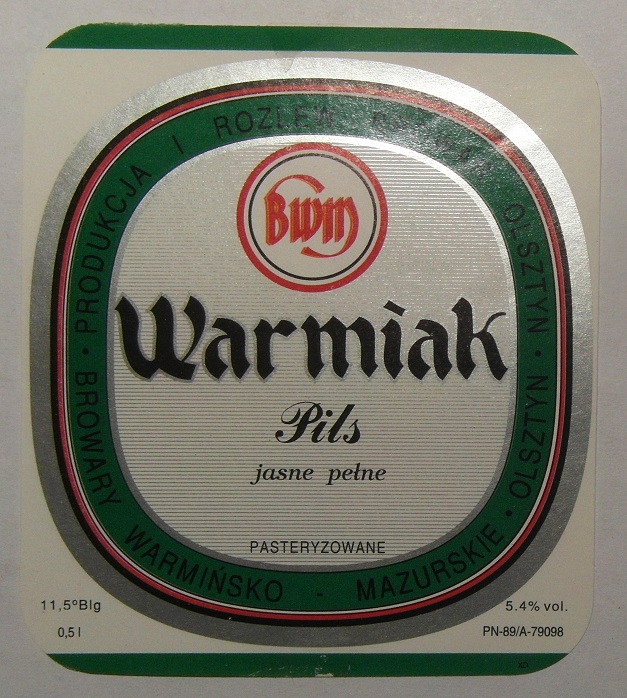 ETYKIETA PIWO JASNE PEŁNE PILS WARMIAK BWM BROWAR OLSZTYN
