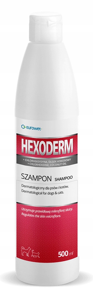 Властивості: Гексодерм - це ветеринарний дермокосметичний засіб, який регулює мікрофлору шкіри, стабілізує її pH і запобігає висиханню, залишаючи тонкий жировий і білковий шар. М'які миючі речовини, що містяться в рідині, дозволяють використовувати її часто.