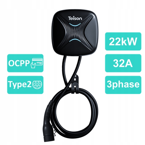 Teison Smart Mini Wallbox 22kW – це зарядна станція для електромобілів із зарядним кабелем, який підтримує протокол OCPP. Smart Mini Wallbox 22kW – це інтелектуальний зарядний пристрій від відомої компанії Teison з невеликими розмірами та стильним зовнішнім виглядом. Надійна конструкція для найвищої продуктивності. Зарядний пристрій пропонує інтуїтивно зрозуміле керування за допомогою смартфона через мобільний додаток Teison Me, який доступний в App Store і Google Play. Smart Mini Wallbox оснащений WIFI і Bluetooth для кращого зв'язку.