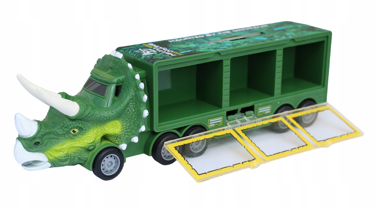 Чудова вантажівка з головою динозавра та валізою для іграшкових машинок.