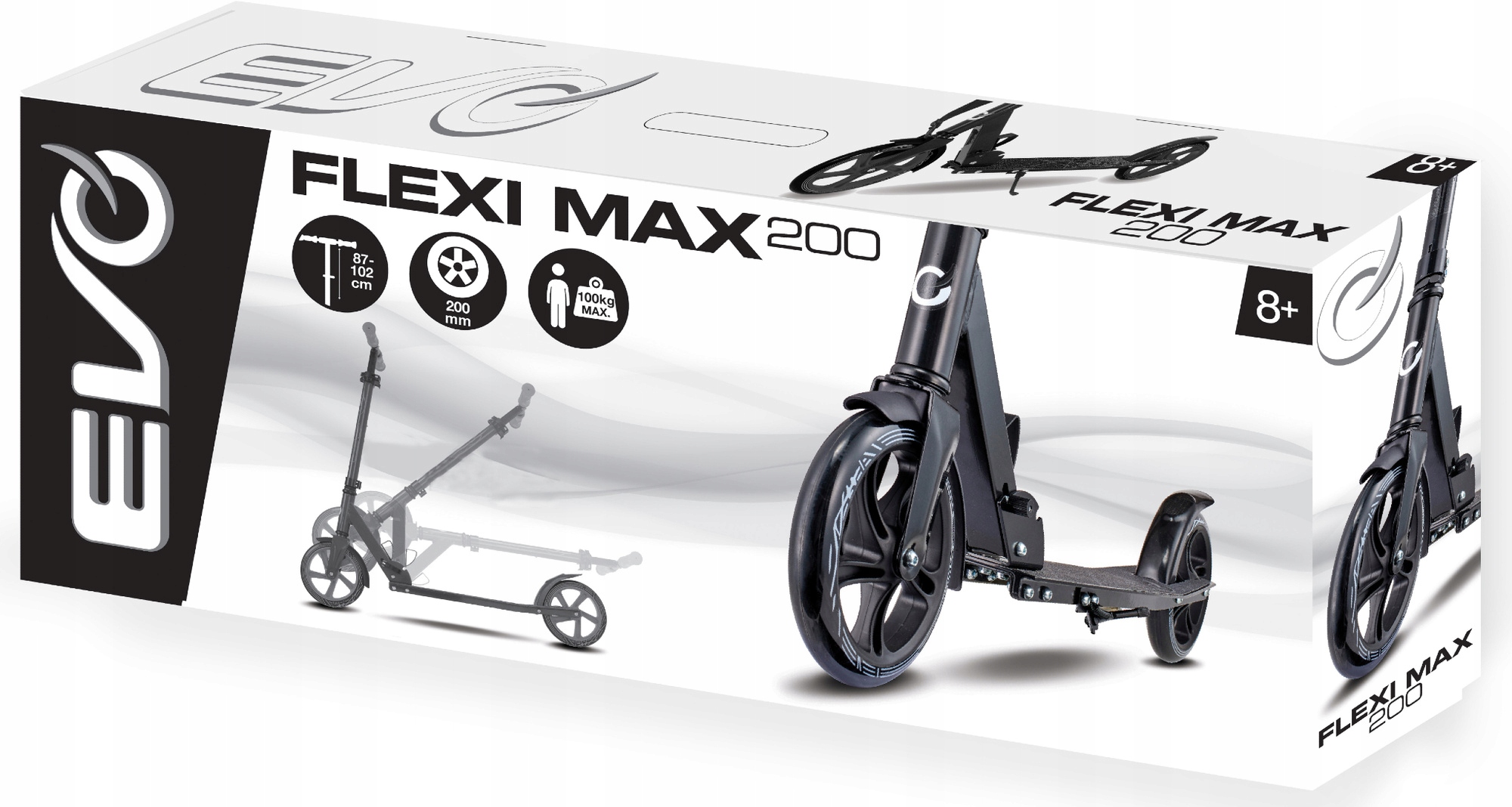 Flexi Max 200 Scooter - це транспортний засіб, який допоможе нам познайомитися та підтримувати відчуття рівноваги . Скутер призначений для дітей віком від 8 років . Тому рекомендується використовувати його попередньо досвідченими користувачами. Більше того, він був зроблений чорним кольором, що є універсальним для кожної статі.