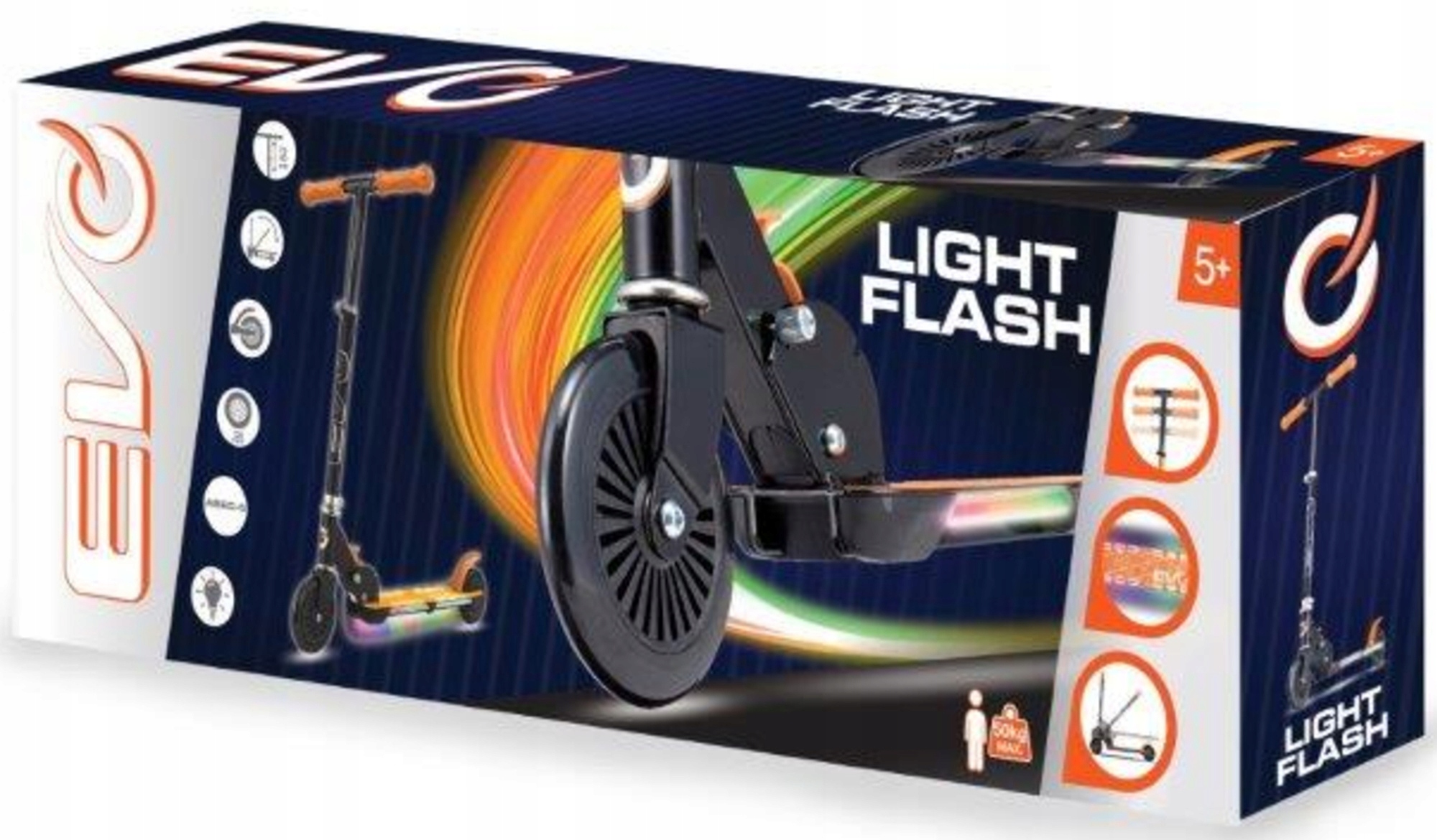 Світловий скутер Flash - це транспортний засіб, який допоможе нам познайомитися та підтримувати відчуття рівноваги . Скутер призначений для дітей віком від 5 років . Тому рекомендується використовувати його попередньо досвідченими користувачами. Однак, використовуючи функцію регулювання , ви можете відрегулювати висоту керма до зростання нашої дитини. Крім того, яскравий помаранчевий колір та барвисті вогні, безумовно, привернуть очі наймолодших.