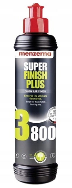 Menzerna Super Finish Plus 3800 - це одна з найкращих фінішних паст на ринку, раніше відома як SF 4000. Завдяки використанню рідких абразивних засобів, дозволяє видалити дрібні подряпини та голограми, залишаючи поверхню фарби глянцевою. Завдяки легкості полірування пасту цінують досвідчені майстри та аматори.