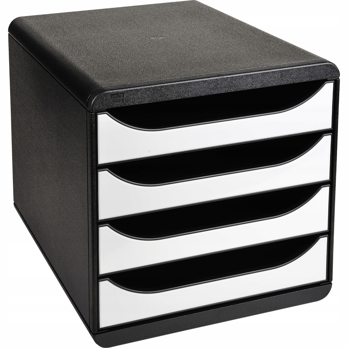exacompty Big Box плюс 3104213d - просторий шафа з 4 відкритими ящиками A4+ у білому глянцеві. Міцний і стабільний, ідеально підходить для офісу та домашнього офісу. Він забезпечує легкий доступ до документів завдяки відкритим ящикам із безпечним механізмом зупинки. Розміри: 347x278x267 мм. .