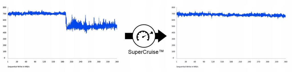 суперкруїза ™ - безперервний запис даних про великі гучності, як у випадку запису відео, може призвести до раптового падіння продуктивності або