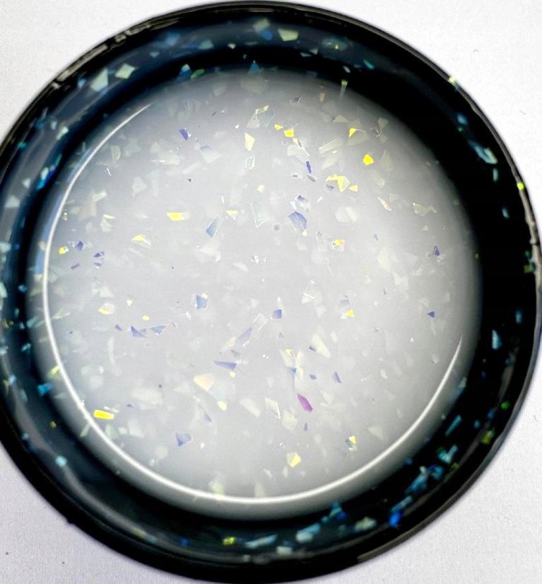Однофазний гель молочного кольору з блискучими шматочками фольги. Цей гель з властивостями самовирівнювання зробить роботу з ним швидкою та приємною. Додавання шматочків фольги дозволить створювати укладання без необхідності нанесення гібридів або топів з фольгою, що значно скорочує час роботи. Це багатофункціональний гель, який підійде як для створення будівельного френча, так і для укладання «нігтів принцеси». Цей гель чудово виглядатиме сам по собі та стане чудовою основою для різноманітних видів декору.