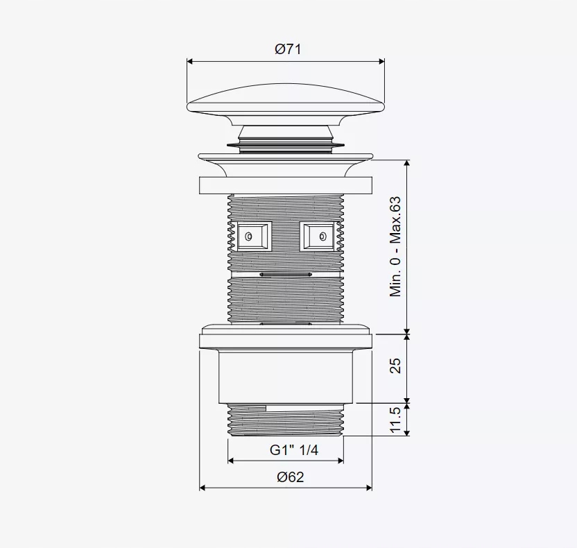 Ця заглушка є інструментом для закриття та відкриття зливу води. Механізм управляється натисканням пробки, яка закриває злив. Щоб розблокувати його, знову натисніть на кришку. Пробка клік-клак дуже зручна при чищенні. Ми без проблем демонтуємо весь механізм, завдяки чому ми можемо видалити весь бруд із сифона та самої пробки.