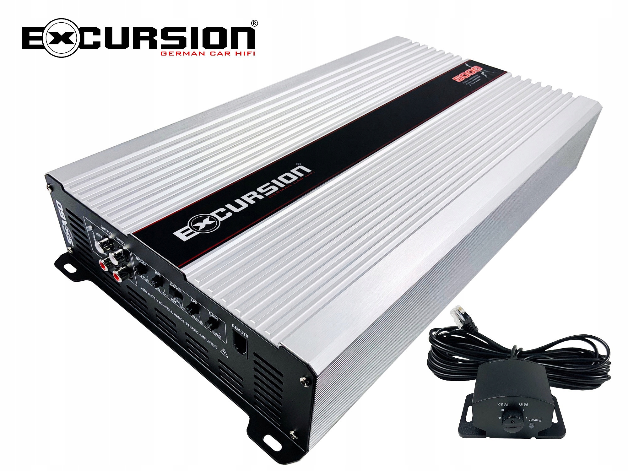 2-канальний автомобільний підсилювач потужністю 2x750-2500W / 1x3000-5000W RMS, стабільний до 1 Ω, широкосмуговий цифровий клас FRD (Full Range Digital), найновіша високоефективна технологія Full Bridge Stereo, внутрішній вентилятор, дротовий контролер підсилення в комплекті.