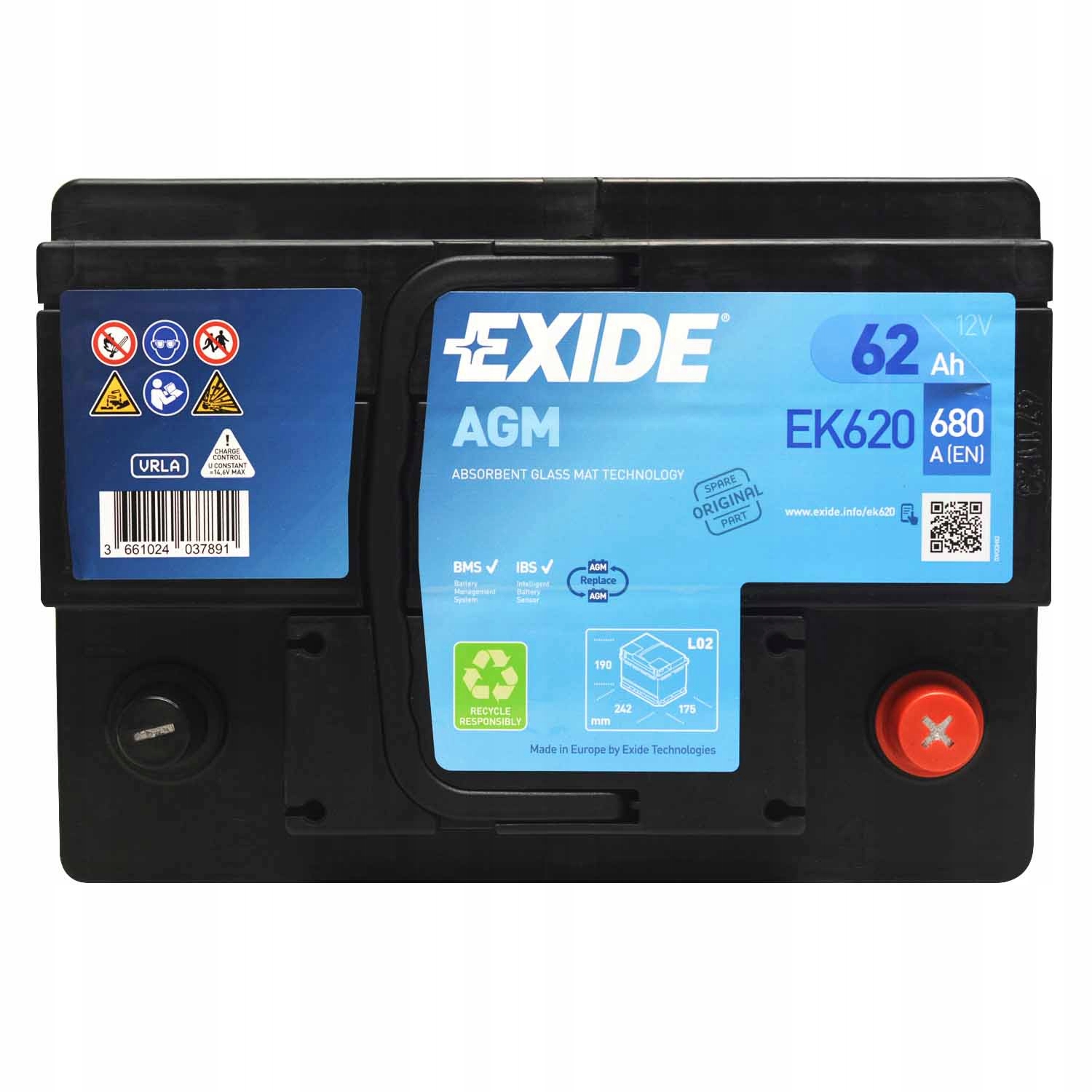 EXIDE EK620 62AH 680A AGM START-STOP