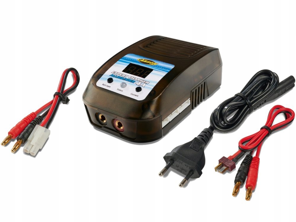 зарядна ємність може бути відрегульована в діапазоні 0,5 амфри до максимум 4 ампенти. Зарядний пристрій оснащений роз'ємами Tamiya та T-Plug і має синій РК-дисплей. Акумулятор: Lipo/Life/nimh