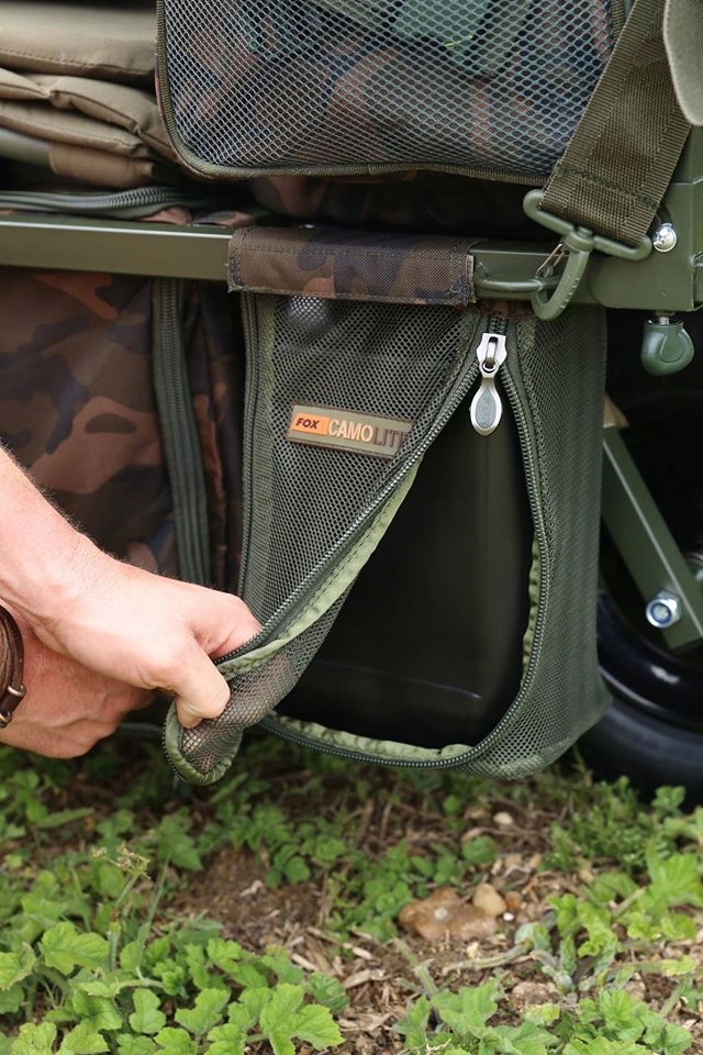 Тачка Explorer має масу чудових функцій і включає центральну сумку з тканини Fox Camo та дві сітчасті кишені з обох боків колеса. Це ідеальне рішення для зберігання таких предметів, як 5-літрові ємності для води або приманки. Тачка Explorer — ідеальна тачка для коротких щоденних поїздок. І основна сумка, і дві кишені мають зовнішні блискавки, тому до них дуже легко отримати доступ, не виймаючи речі з самої тачки.