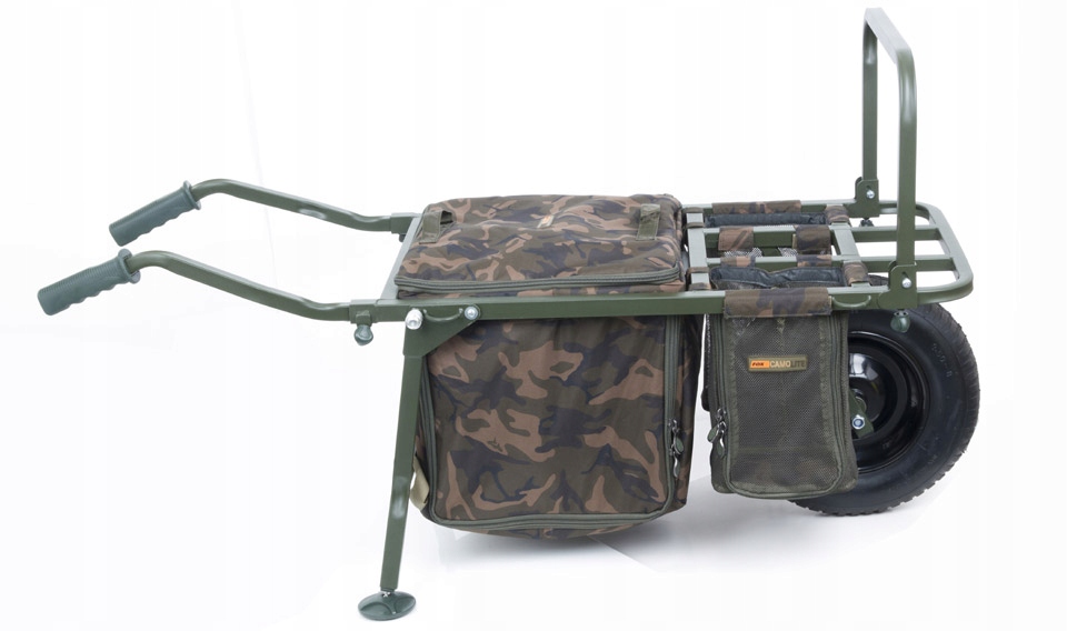 • Висувна передня частина тачки - дозволяє розмістити на передній частині сумку Camolite Barrow Bag (продається окремо) і використовувати тачку в «сидячому режимі», а також транспортувати ліжко. Якщо вам не потрібне ліжко під час риболовлі, просто посуньте передню частину тачки назад і поверніть саму сумку Barrow Bag. Завдяки такій конструкції тачка зберігає баланс як у розкладеному, так і в скороченому варіантах.• Ергономічні знімні ручки для транспортування• Міцна сталева рама• Система швидкої зміни коліс із надувною шиною• Регульовані широкі ніжки зі шпильками• Займає мало місця в упаковці і підходить до найменших автомобільних багажників• Включає два універсальних ремені FX, які кріпляться до тачки за допомогою вушок на рамі• Включає підсумок Barrow Bag, який легко «втоплюється» в центр рами, а потім може бути упакований сумками серії Camolite, які доступні окремо• Дві сітчасті кишені з обох боків колеса• Нові сумки та чохли серії Fox поміщаються в тачка Camolite