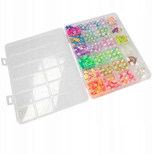Набір бісеру YLVI містить усе, що потрібно для створення магічно красивих браслетів та намиста: 18 різних намистин, 3 веселкові стрічки, 4 прозорі стрічки (усі 1 м кожен) та чарівні підвіски у формі єдинорога, веселки та сердець. З короткими інструкціями для прив'язки. Весь упакований у закритій пластиковій коробці з окремими відсіками.