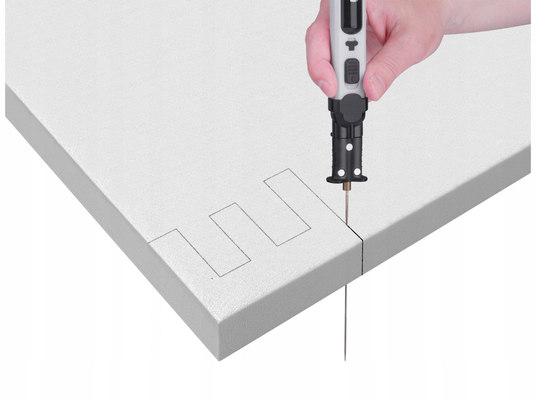 Акумуляторний різак із набором ріжучих насадок призначений для вкорочення, різьблення, канавок і формоутворення на пінопластових плитах, таких як пінополістирол, пінополіетилен тощо. За допомогою цього акумуляторного різака ви можете створювати невеликі ремісничі проекти з пінопласту вдома чи в школі. Лінія різу нагрівається до 100? приблизно за 12 секунд і до робочої температури 550? приблизно за 30 секунд. Інструмент оснащений вбудованим світлодіодним підсвічуванням, що забезпечує кращу видимість і точність під час різання навіть в умовах слабкого освітлення. Нитка вилки використовується, наприклад, для делікатного та точного різьблення, напр. з міцного пінополістиролу. Ніж для різання призначений для різання великих форм на поверхні або укорочення пінополістиролу. U-подібний ніж використовується для «виколювання» глухих отворів у пінопласті. Паяльний ковпачок використовується, наприклад, як ручка для написання тексту або малювання на пінополістиролі, а також може використовуватися для паяння пластмас або, після приєднання мідних наконечників, для м’якого паяння. Щоб спростити роботу, різак можна закріпити на столі за допомогою ручки, що входить у комплект, і мати обидві руки вільними для обробки матеріалу під час різання. Інструмент заряджається через стандартний кабель USB-C від будь-якого USB-зарядного пристрою або комп’ютера. Повна зарядка займає 3-4 години. Інструмент зберігається в міцній пластиковій коробці разом з ручкою, USB-кабелем та іншими аксесуарами. Завдяки літій-іонному акумулятору рушницю можна заряджати в будь-який час без зменшення ємності акумулятора. Літій-іонний акумулятор дуже повільно втрачає енергію через саморозряд і довго заряджається.