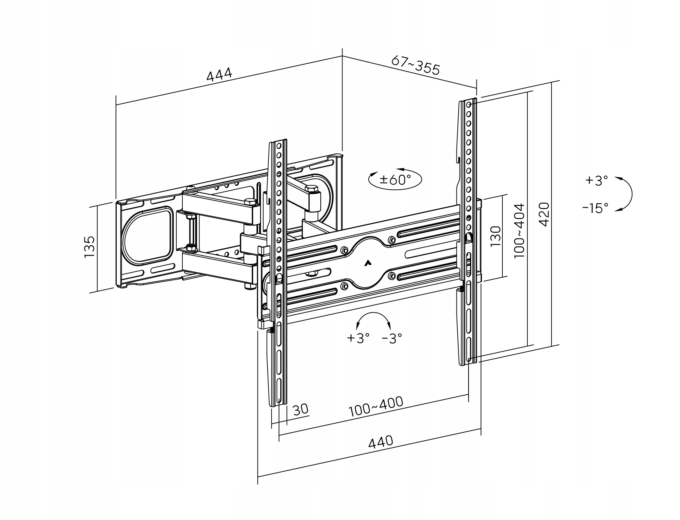 - Діапазон нахилу (вгору/вниз): +3° / -15° - ідеальний кут огляду