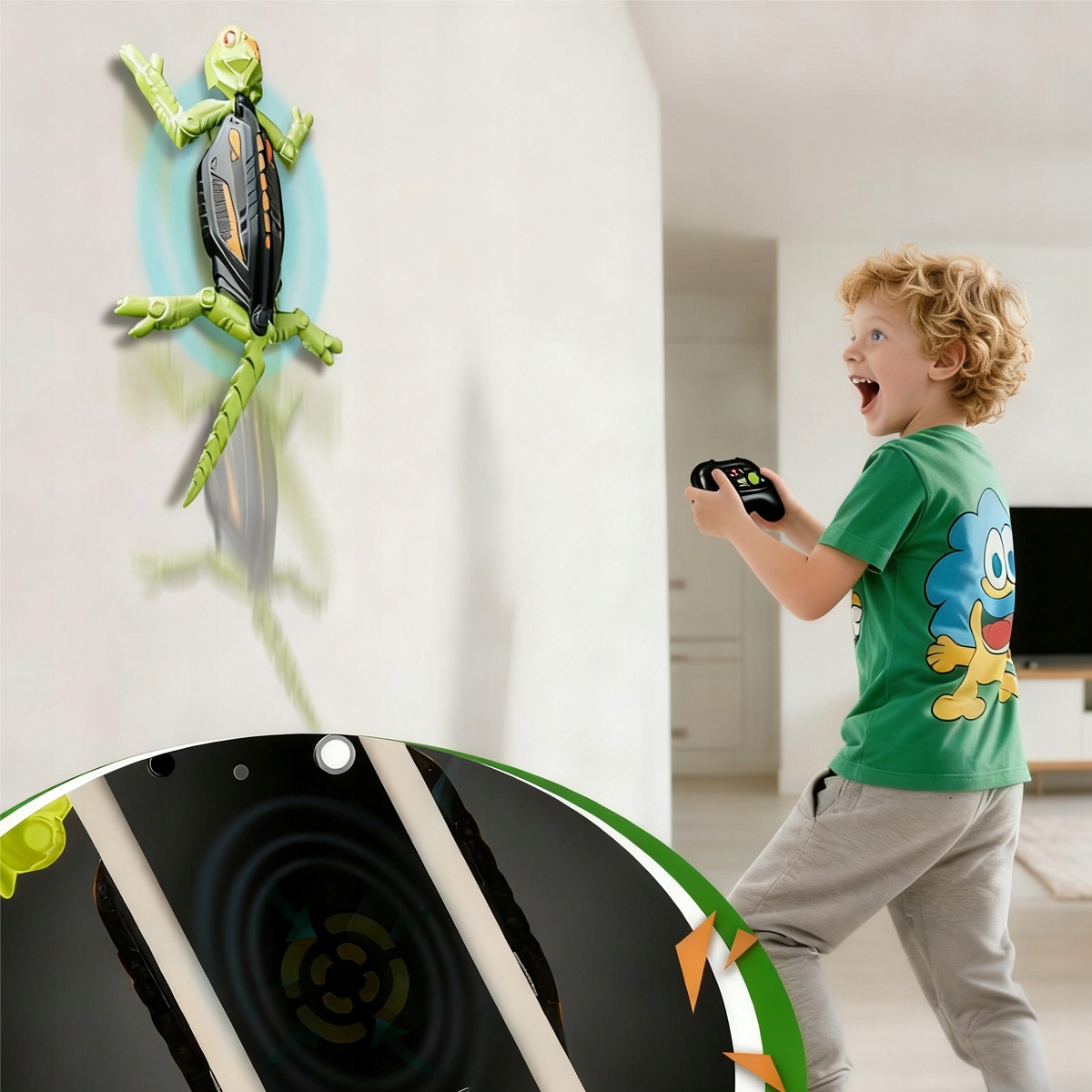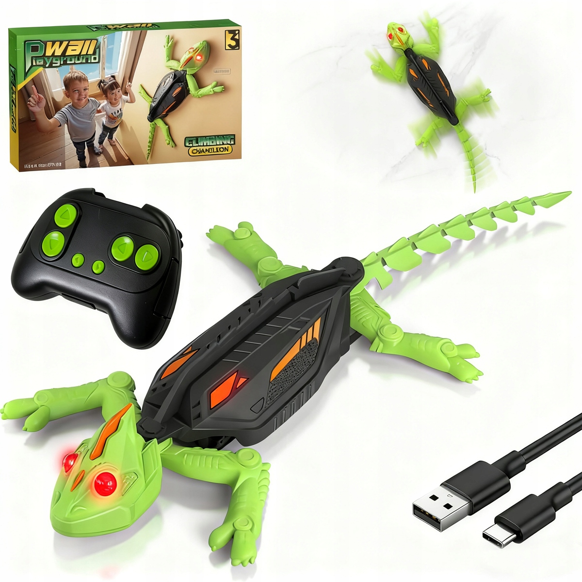 Ця іграшка у формі ящірки підтримує вільне перемикання між двома режимами: рівна підлога та стіни, а радіус дії пульта дистанційного керування становить до 8 метрів. Він пропонує обертання на 360°, можливість ковзати по стіні, плавний рух і багаті ігрові можливості. Діти легко освоїться, а дорослі знайдуть його непереборним.