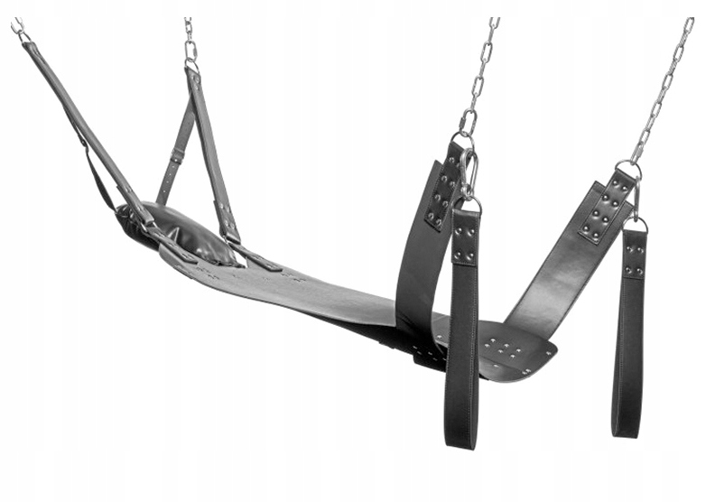 Шкіряний матеріал важкий, але зберігає ціну доступною для більшої кількості ентузіастів зв’язування! Шарф дозволяє їм лягти та поставити ноги на стремена, що входять у комплект. М’яка подушка тримає його, як крихітну голову, а регульовані ремені (на голові) дозволяють піднімати або опускати верхню частину тіла. Стремена можна застібати або розстібати за допомогою міцних металевих карабінів, а вдосконалений матеріал зменшує вагу, полегшуючи транспортування.
