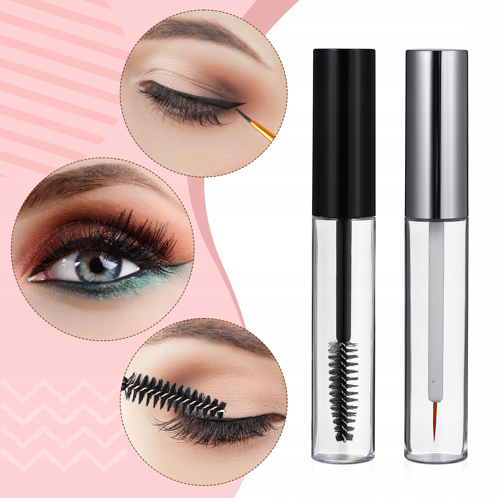 Порожній флакон дає змогу легко наносити такі косметичні засоби, як туш, олія для росту вій, кондиціонер для вій тощо. Порожні тюбики, доступні у двох стилях, допоможуть створити довгі густі вії чи виразну підводку. Підходить для повсякденного використання, відряджень і туризму.