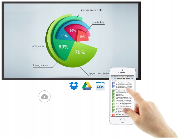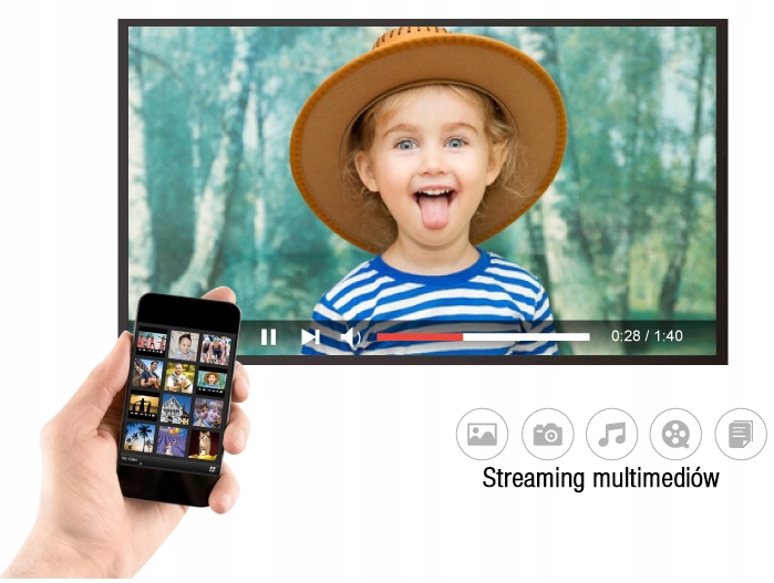 Переглядайте фотографії, відео та музику з мобільних пристроїв на телевізорі без втрати якості. Просто виберіть файл, який вас цікавить, і скористайтеся інтерфейсом свого смартфона/планшета, щоб вибрати пристрій відображення (Wi-Fi Display Receiver).